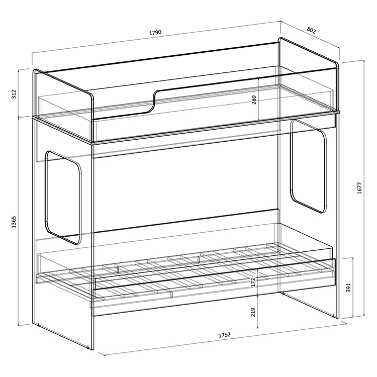Высота кровати B605.4 всего 1677 мм.