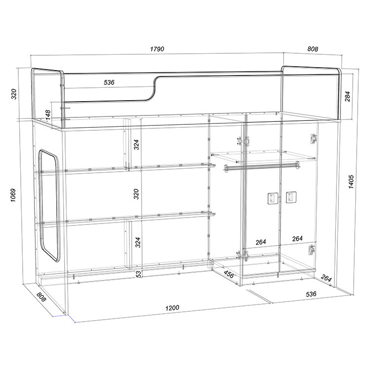 Комплект очень компактный и занимает всего 3,58 метра. Подойдет практически для любой комнаты.